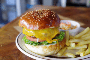 肉汁が溢れる。チーズがとろける。バンズが香ばしい。