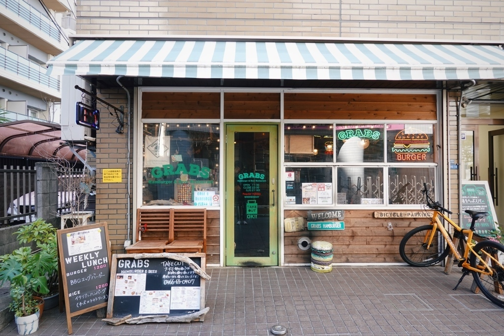 藤沢駅南口から徒歩数分。木目とビビッドカラーが映えるアメリカンダイナー GRABS は、2016年オープン以来“分厚い肉感のバーガー”を軸に、昼はランチ、夜は一品とアルコールまで気軽に楽しめる使い勝手で支持を広げてきた店です。英語メニューやキッズ対応の案内も見られ、観光客からファミリーまで受け皿が広いのも特徴。駅近の動線は、仕事帰りのサク飯や週末のはしごにも組み込みやすいポジションです。