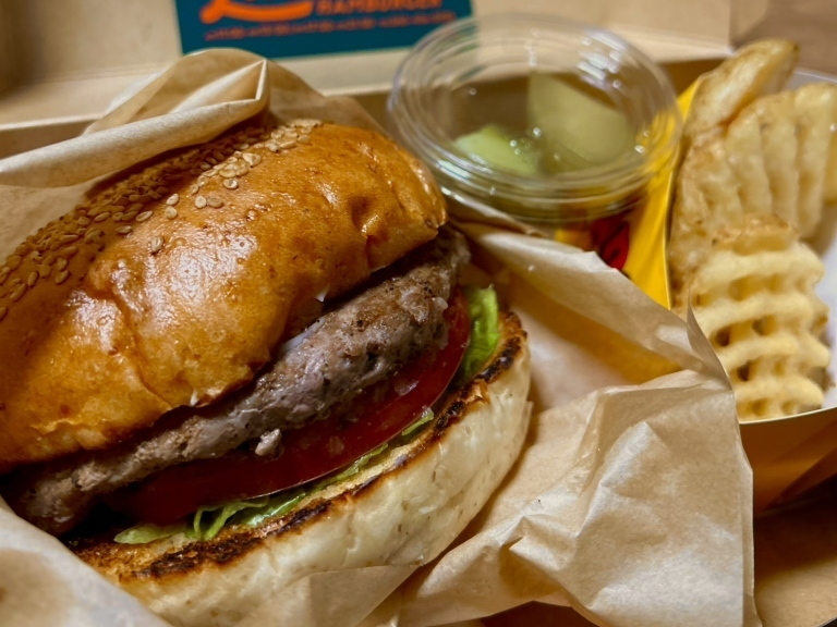 面白いのは、店のこだわりが「店内で完結」じゃないところ。天然酵母バンズは箱の中の蒸気で仕上がるように水分量を調整している。つまり、受け取ってからの数分で“完成に近づく”作り方。持ち帰りでバンズがパサつく問題を、逆方向で解いてくるのが粋です。