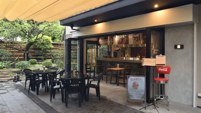 小町通りの路地に入った「こもれび禄岸」内——ザ・ファクトリー鎌倉は、毎朝焼き上げる自家製バンズと鎌倉野菜、ビーフ100%(黒毛和牛100%という紹介も)を掲げるグルメバーガーの専門店。バーガーに相性抜群のミルクシェイクや、ナチョス/ローディッドフライまで“アメリカンダイナーの楽しさ”をひと通り揃え、テラスはペット同伴可の案内も。観光導線の中心にいながら、木漏れ日の落ちる半路地の空気が心地よい“抜け”を与えてくれます。